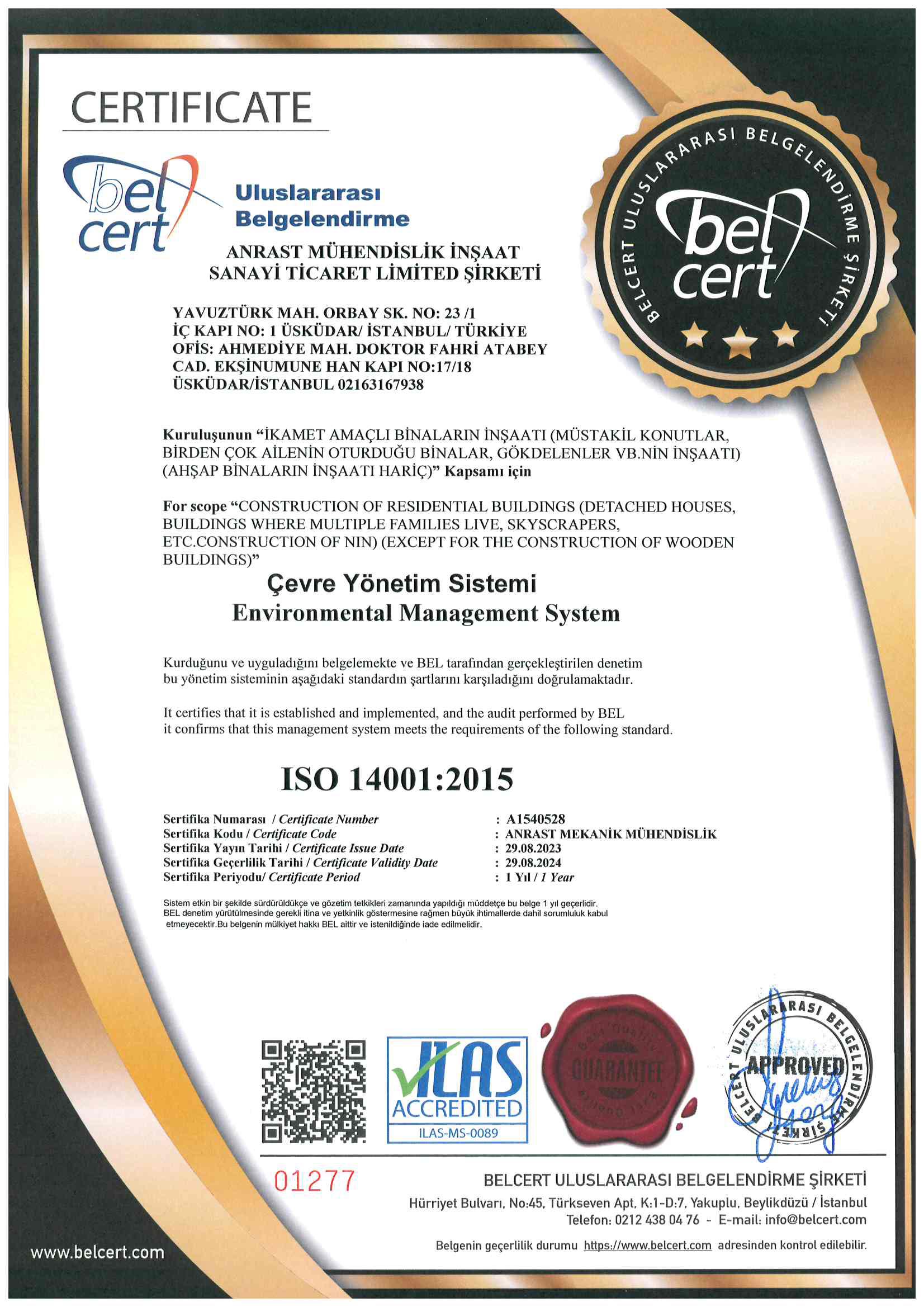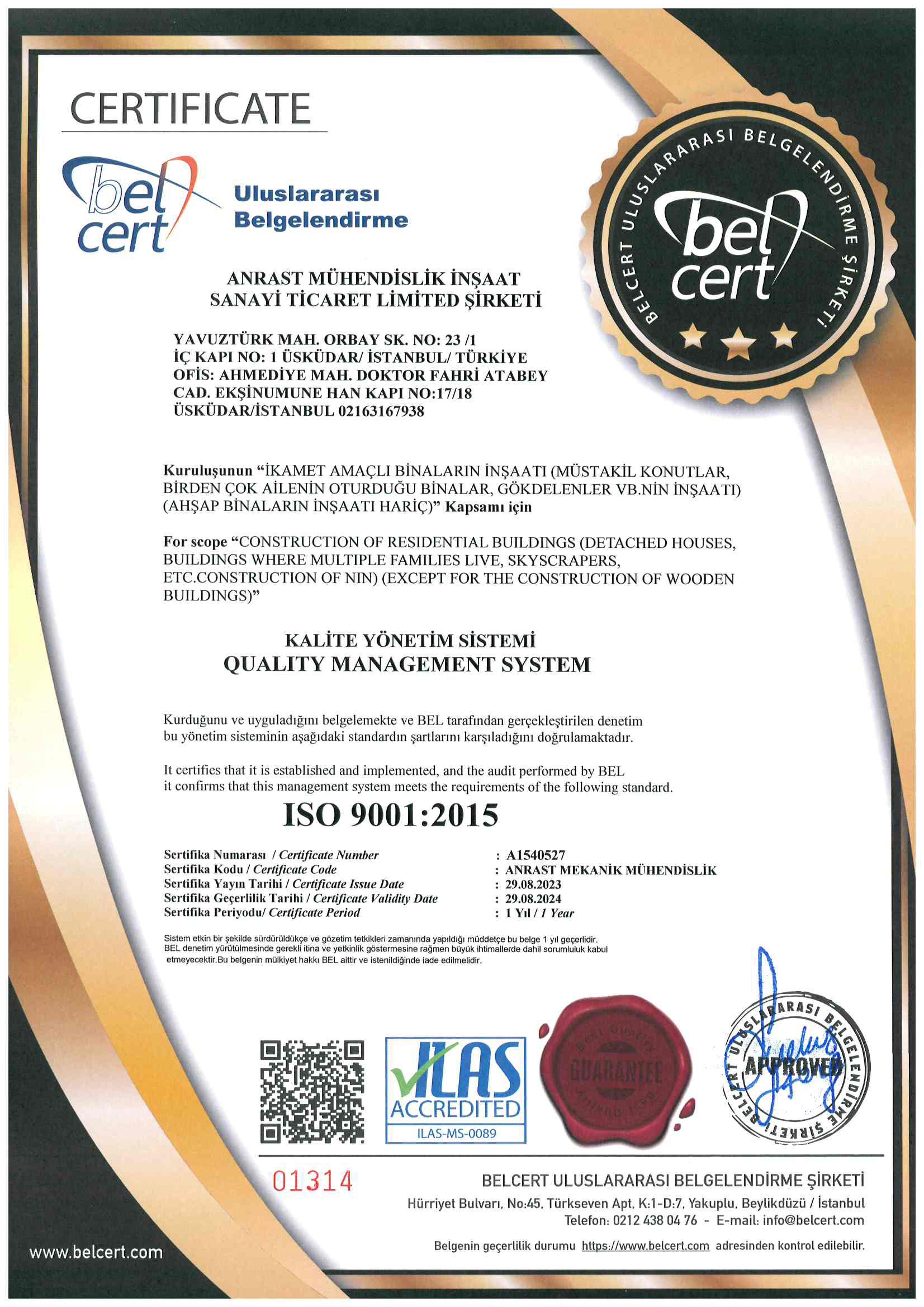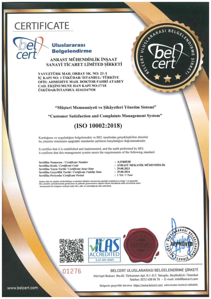 Bu kalite politikası, ANRAST çalışanları ve iş süreçlerine rehberlik ederek, şirketimizin müşterilere karşı taahhüdünü, yüksek standartlarını ve sürekli iyileştirmeyi vurgular.
