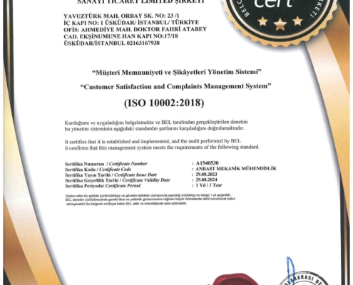 Müşterilerimizin beklentilerini aşmak ve sürekli memnuniyet sağlamak için kalite standartlarımızı sürekli olarak iyileştireceğiz.